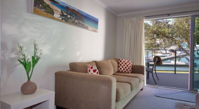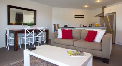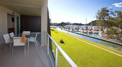 Our three bedroom marina view is a spacious apartment featuring modern décor and a large private balcony or patio.