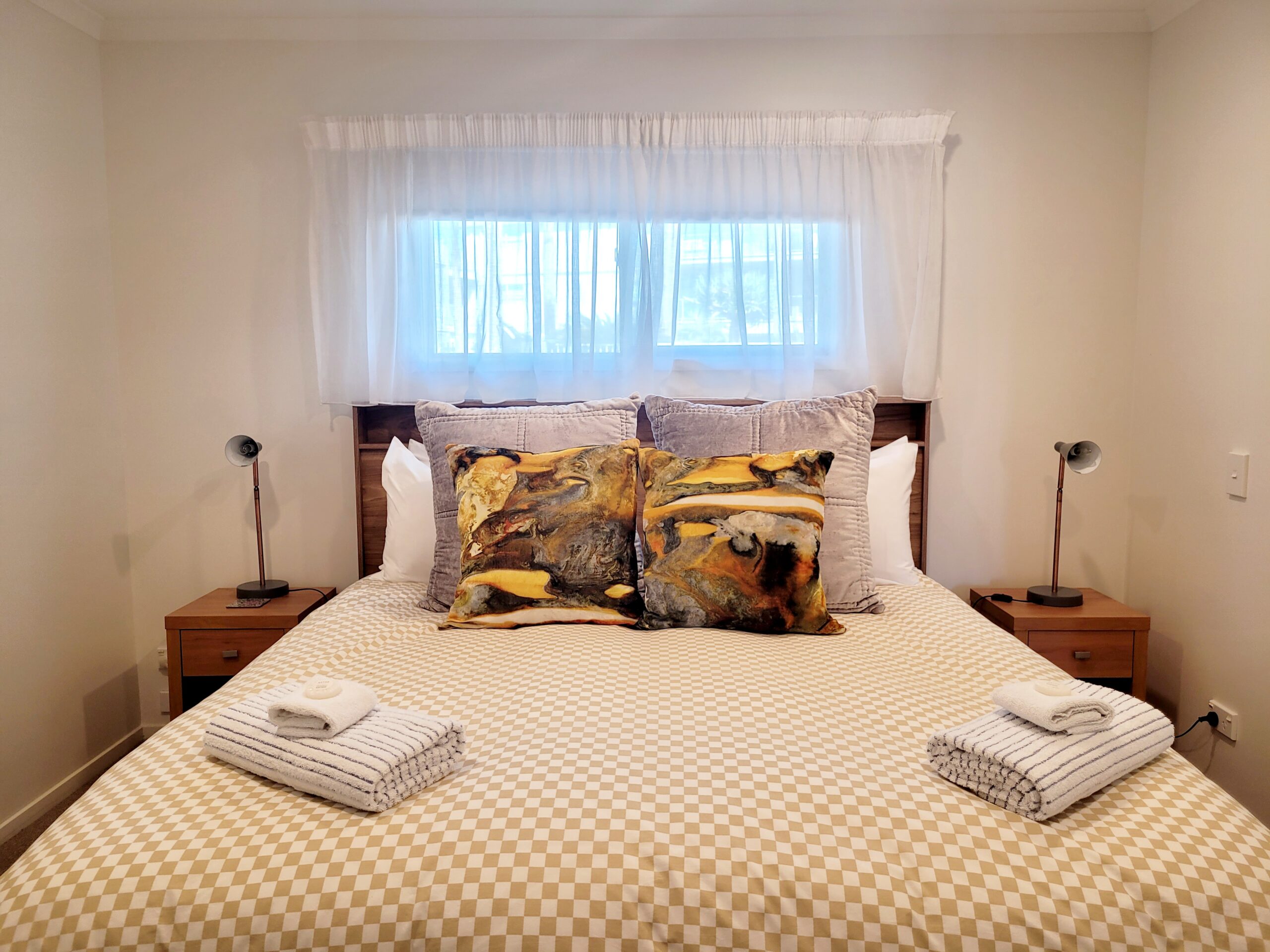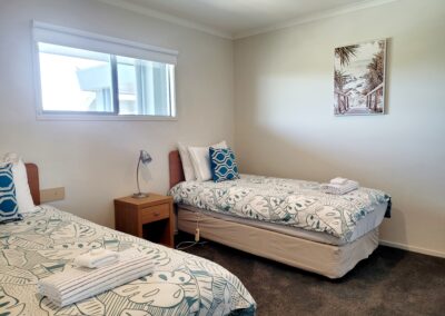 The bedrooms include queen bed in master, twin beds or queen and single in second bedroom.