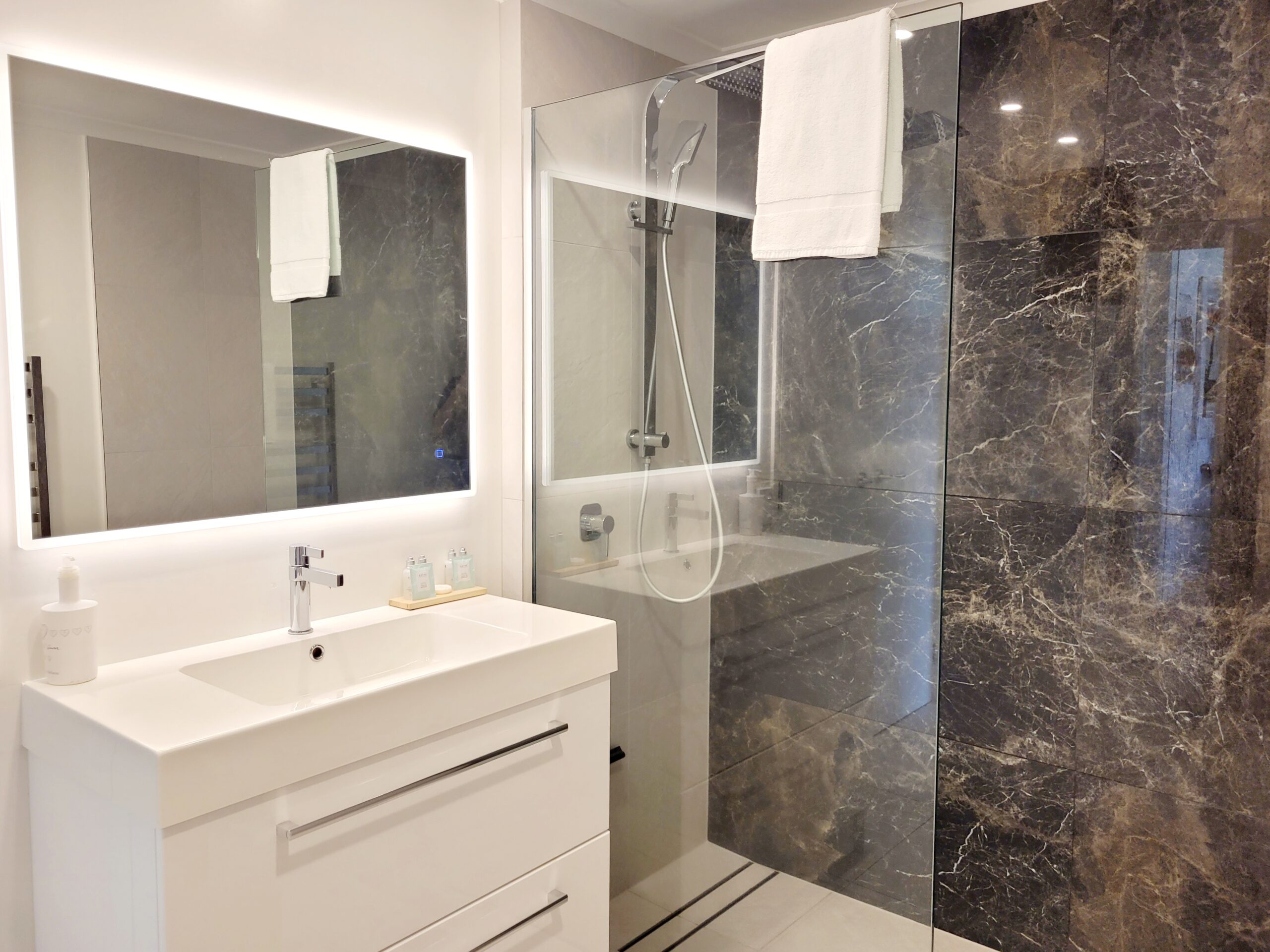 The apartment includes a full kitchen with dishwasher, microwave and oven. Guests also have access to a gym, an outdoor heated swimming pool, large hot tub and wifi.