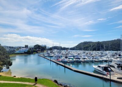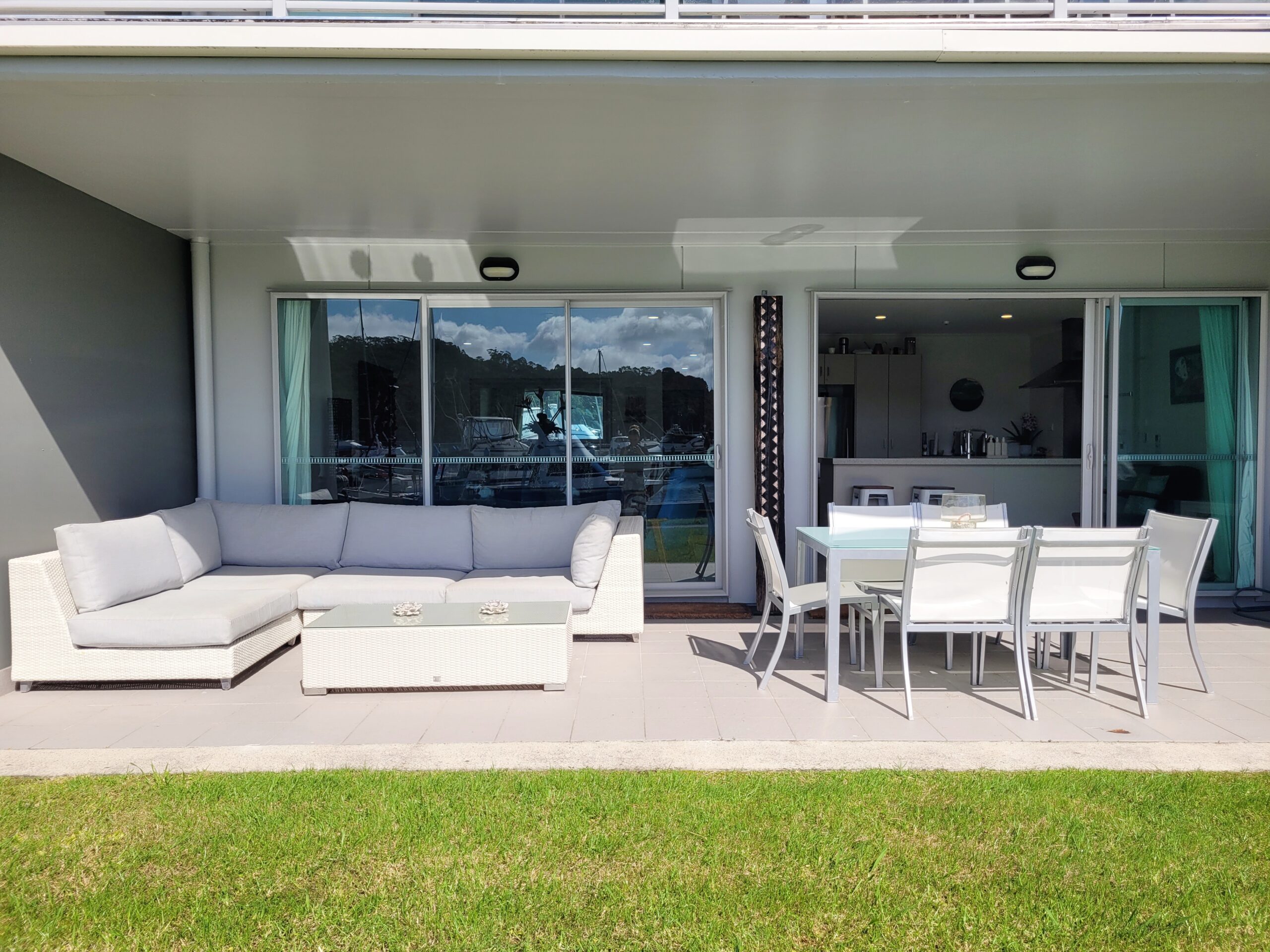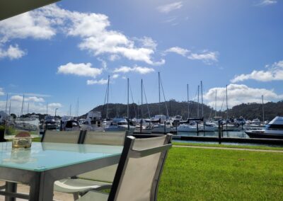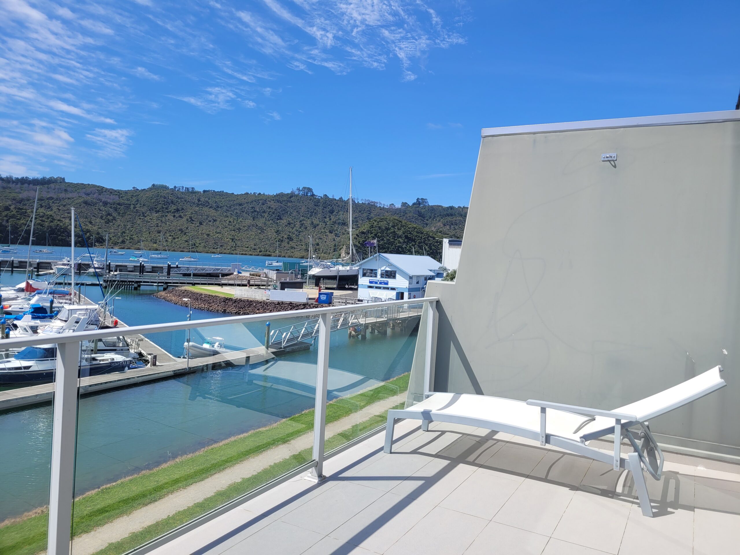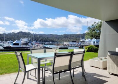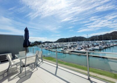 Our two bedroom marina view is a spacious apartment featuring modern décor and a large private balcony or patio.